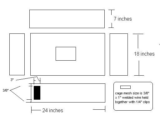These are the dimensions for the small BWQ recall-pen that I use for transport to sites where it will not be left overnight. It has no center divider and only one entrance. I place cardboard or plywood on top and stack them for transportation. I believe that it works best with the plywood left on top during recall period. My suggestion is that you use a couple of watering devices in the pen. If you use for longer periods than daily outings you probably should provide for feed.